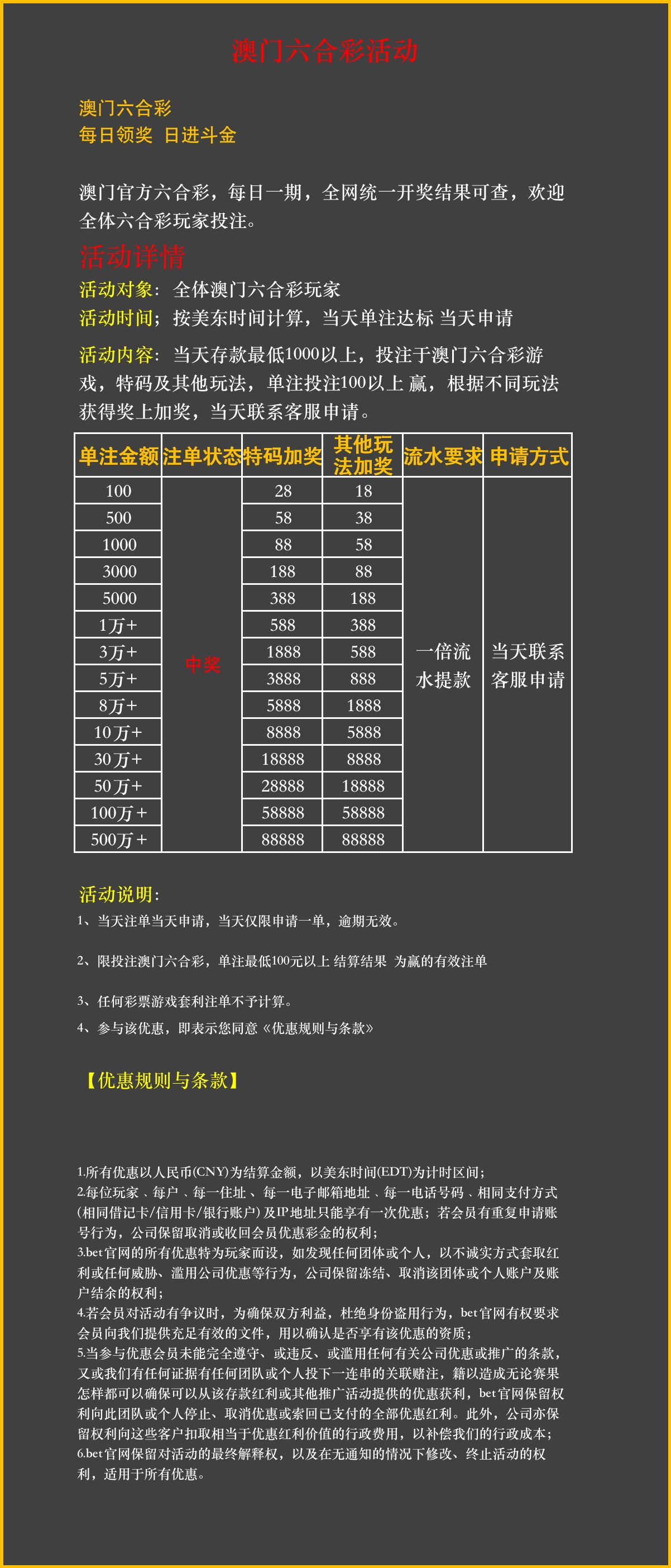 注:此彩金针对站内真实新老会员申请,需达入款金额的三倍流水才可符合申请资格。